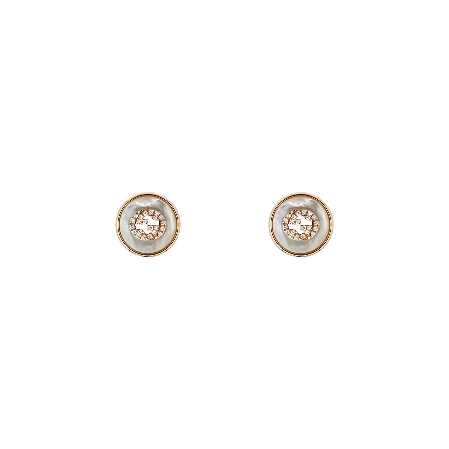 ORECCHINI A BOTTONE IN ORO ROSA, MOP, DIAMANTI, PAVé GG