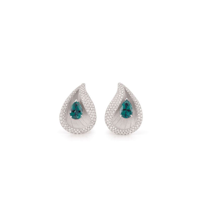 Orecchini Serie Prestige in Oro White Ice 18Kt con Tormalina verde e Diamanti. Dia ct. 0.64