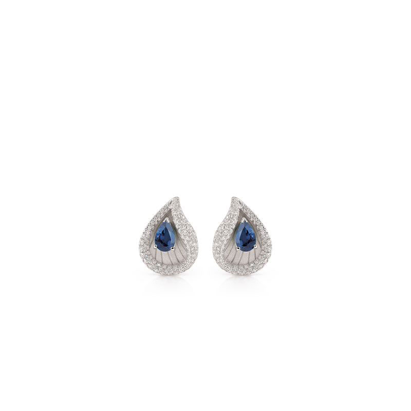 Orecchini Serie Prestige in Oro White Ice 18Kt con Zaffiri blu e Diamanti. Dia ct. 0.45