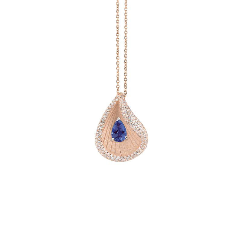 Pendente Serie Prestige in Oro Pink Champagne 18Kt con Tanzanite e Diamanti. Dia ct. 0.47