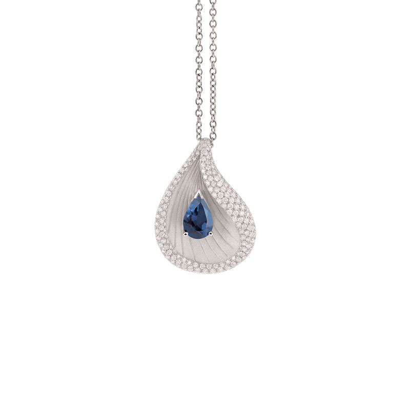 Pendente Serie Prestige in Oro White Ice 18Kt con Zaffiro blu e Diamanti. Dia ct. 0.82