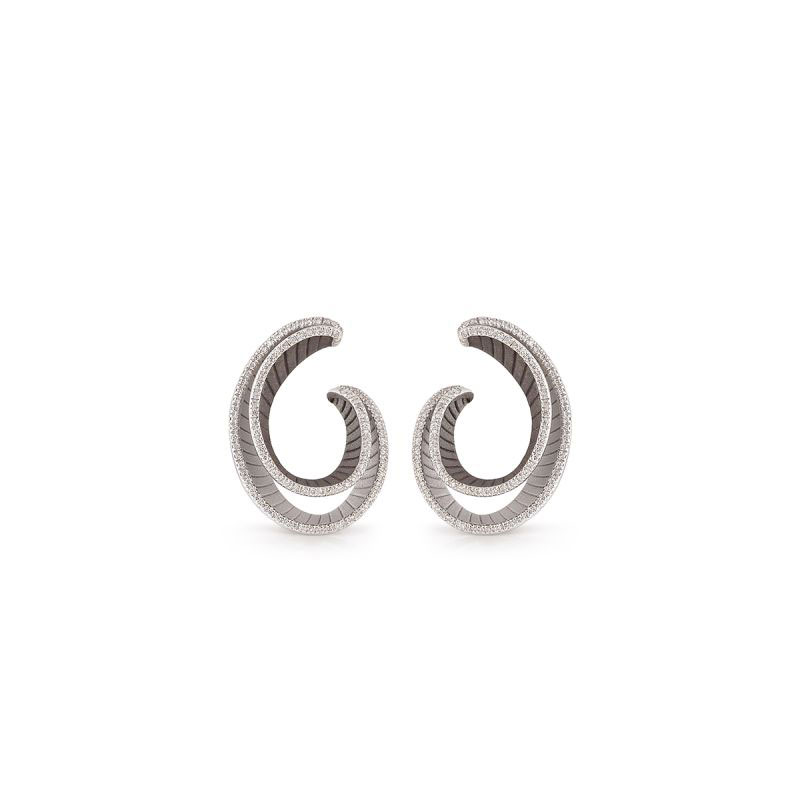 Orecchini Serie Regina in Oro White Ice e Black Lava con Diamanti. Dia ct. 0.9