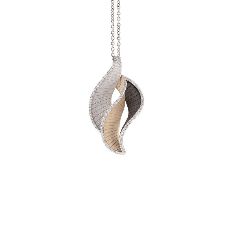 Pendente Serie Regina in Oro Black Lava, Natural Beige e White Ice 18Kt con Brillanti. Dia ct. 0.28