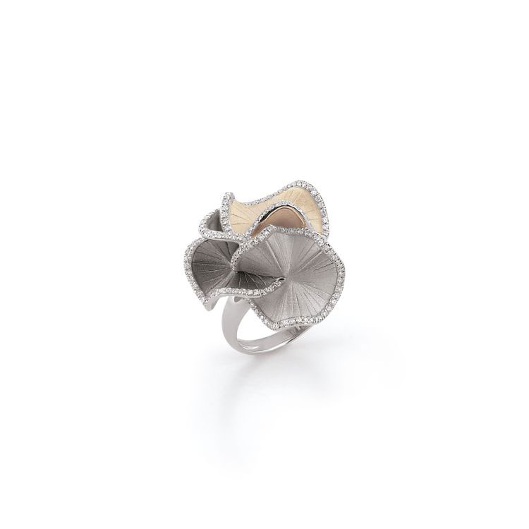 Anello Serie Sultana in Oro White Ice e Natural Beige 18Kt con Diamanti. Dia ct. 0.23