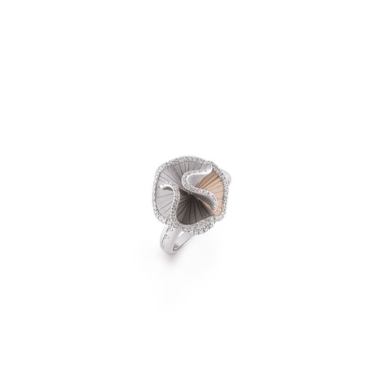 Anello Serie Sultana in Oro Pink Champagne, Natural Beige e Black Lava 18Kt con Diamanti. Dia ct. 0.48