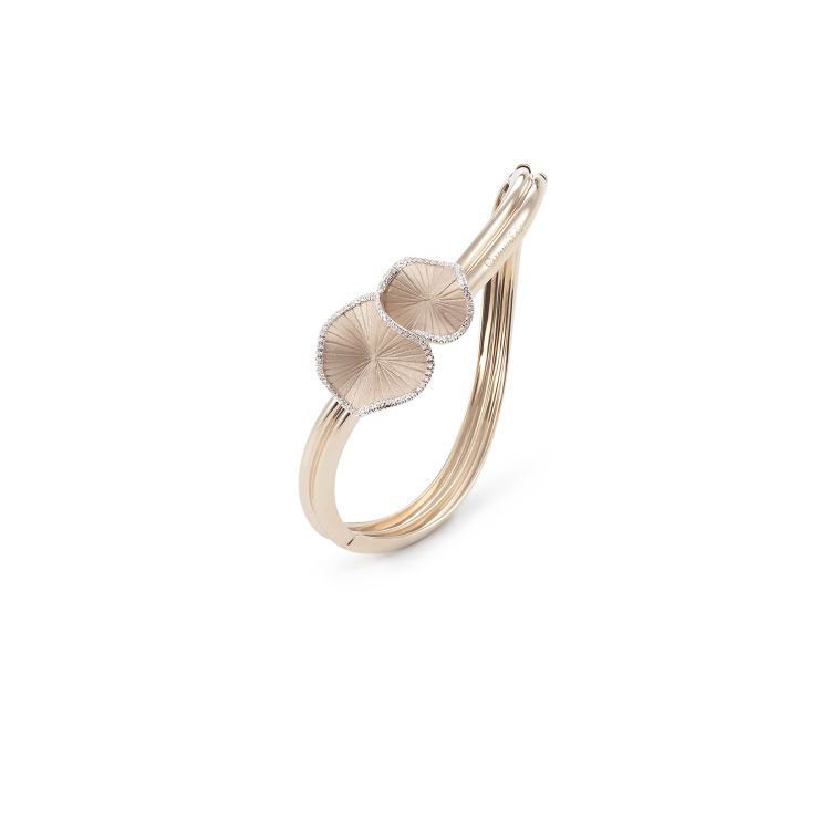 Bracciale Serie Sultana in Oro Natural Beige 18Kt con Diamanti, circonferenza 17 cm. Dia ct. 0.25