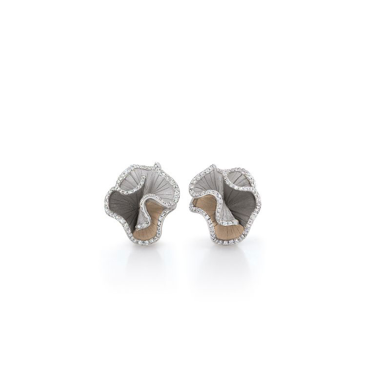 Orecchini Serie Sultana in Oro White Ice e Natural Beige 18Kt con Diamanti. Dia ct. 0.48