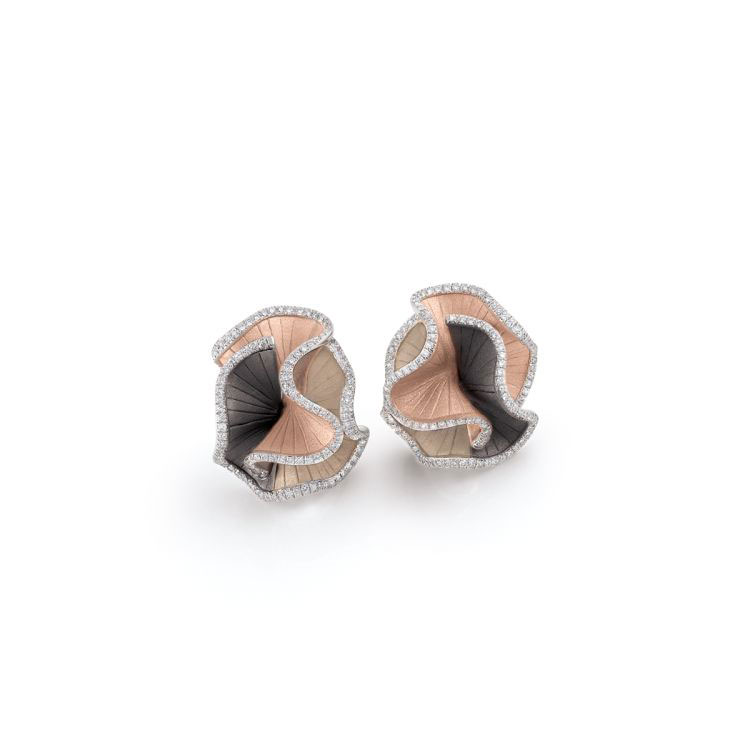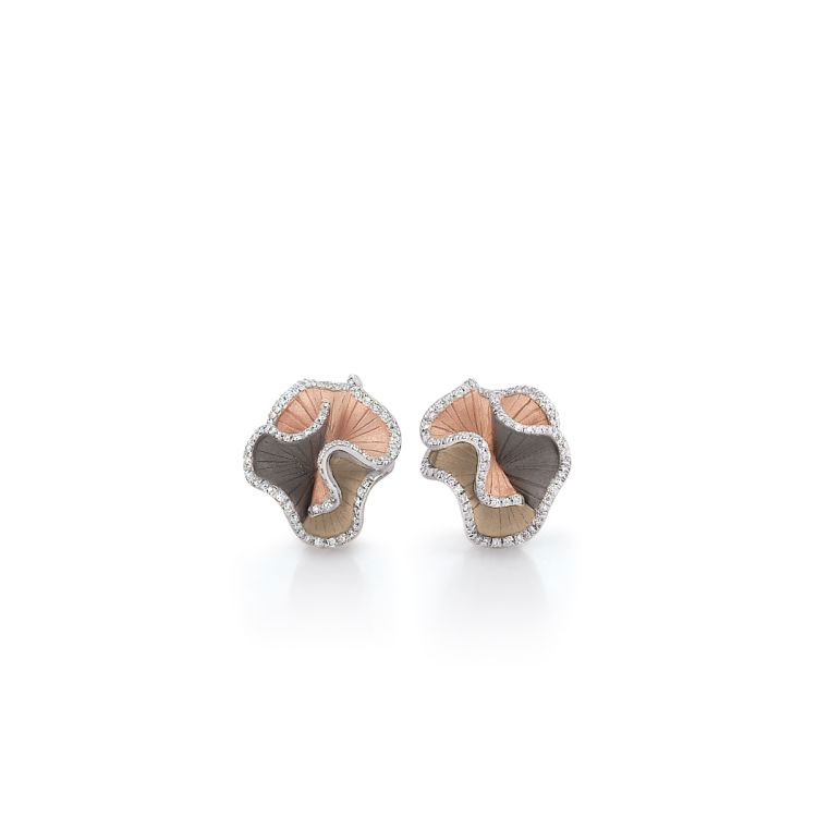 Orecchini Serie Sultana in Oro Pink Champagne, Naural Beige e Black Lava 18Kt con Diamanti. Dia ct. 1.08