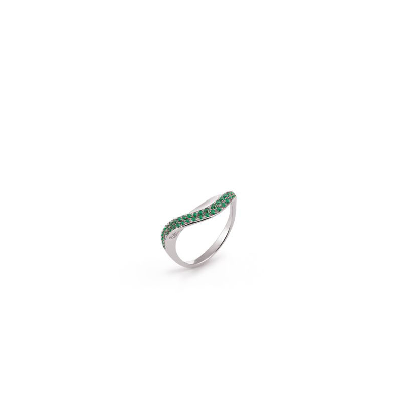 Anello Serie Velaa Color in Oro White Ice 18Kt con Smeraldi