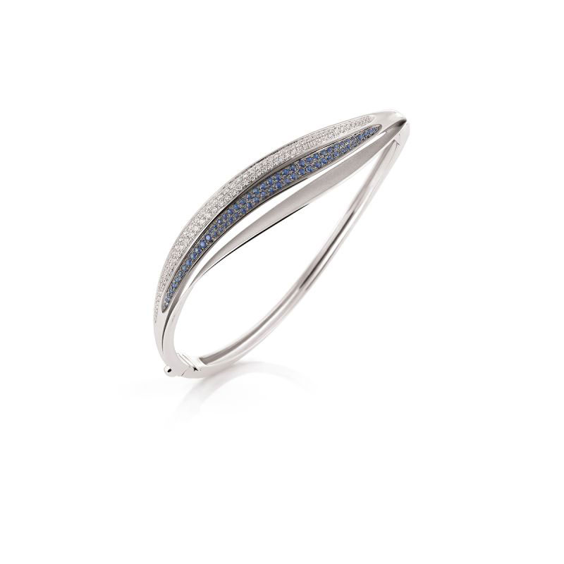 Bracciale Serie Velaa Color in Oro White Ice 18Kt con Diamanti e Zaffiri blu.Dia ct. 0.42