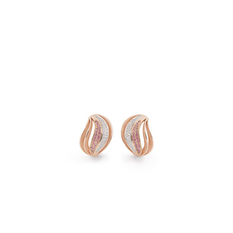 Orecchini Serie Velaa Color in Oro Pink Champagne 18Kt con Diamanti e Zaffiri rosa. Dia ct. 0.16