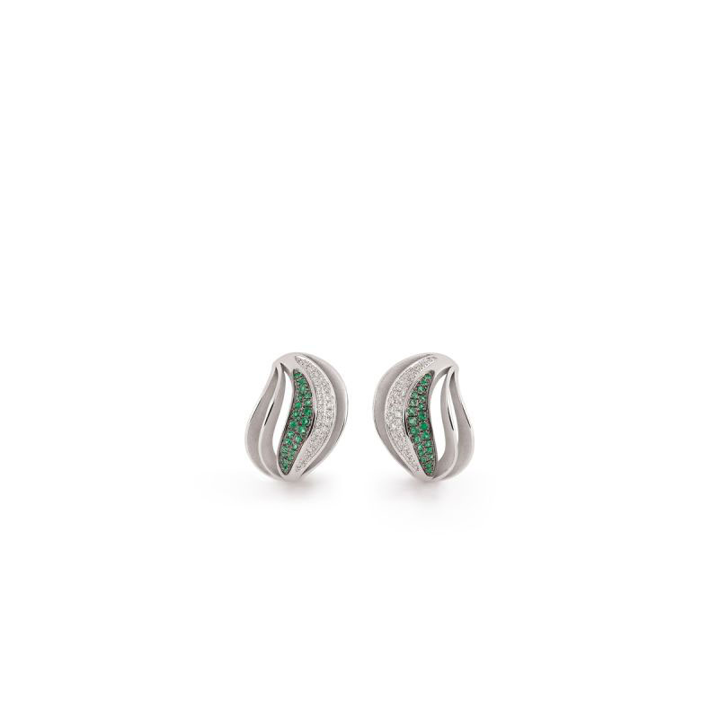Orecchini Serie Velaa Color in Oro White Ice 18Kt con Diamanti e Smeraldi. Dia ct. 0.16