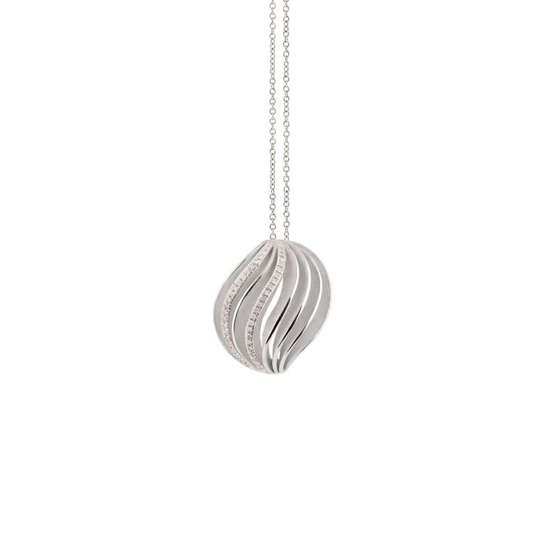 Pendente Serie Velaa Waves in Oro White Ice 18Kt con Diamanti. Dia ct. 0.07